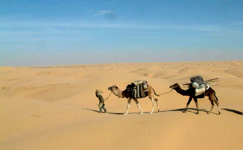 Der Junge tat, wie ihm geraten: Er fand einen kleinen Busch, schützte sich mit einer Decke so gut er konnte, atmete tief, und ließ den Sturm über sich hinwegziehen. Stunden vergingen. Dann legte sich der Wind, die Dünen glätteten sich wie von unsichtbarer Hand, und die Karawane konnte ihren Weg fortsetzen.