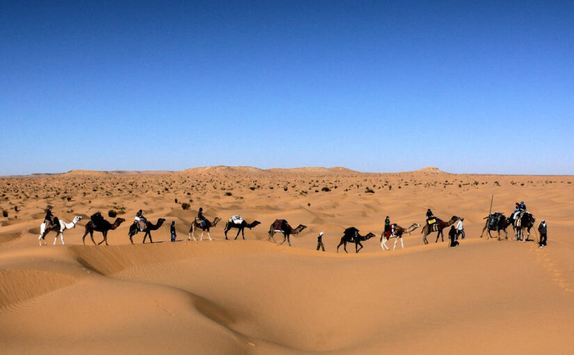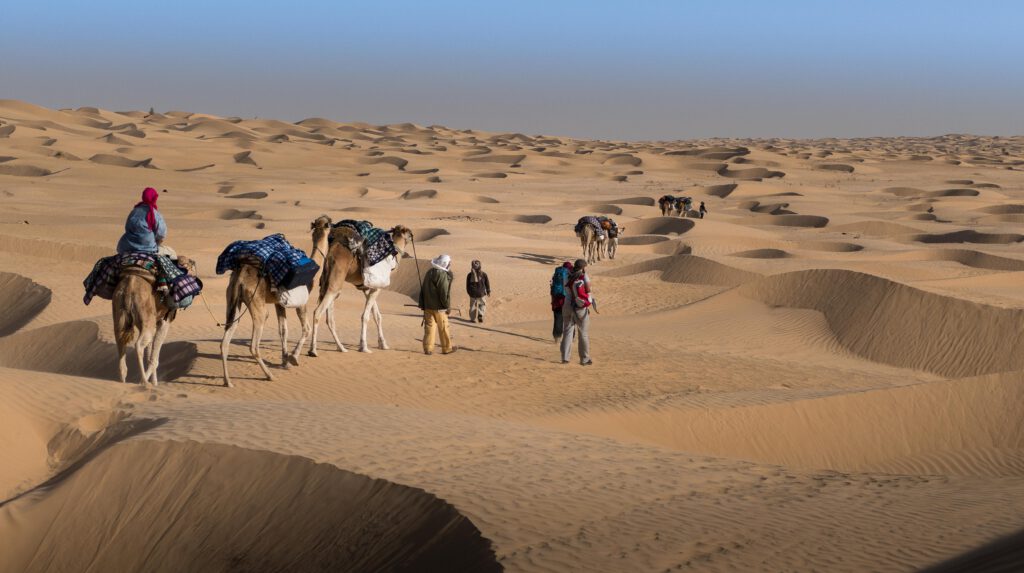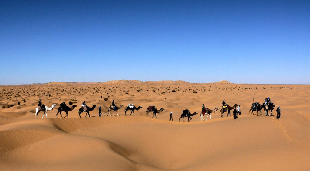Die Sonne stand hoch über der Wüste, als eine Karawane sich langsam über die Dünen bewegte. Kamele, Menschen, Vorräte – alles war aufeinander angewiesen. Jeder Schritt musste bedacht sein, jeder trug seinen Teil bei.
